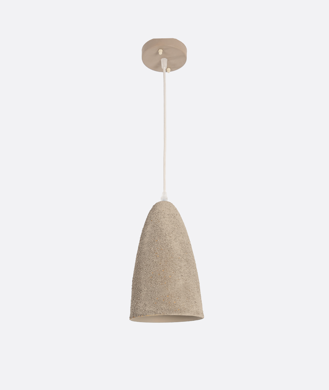 Modern pendant light with a cone-shaped shade in textured concrete grey finish. The raw surface gives an industrial yet elegant style, while the warm inner tone provides cozy ambient lighting. Perfect for kitchens, dining rooms, or modern loft interiors.