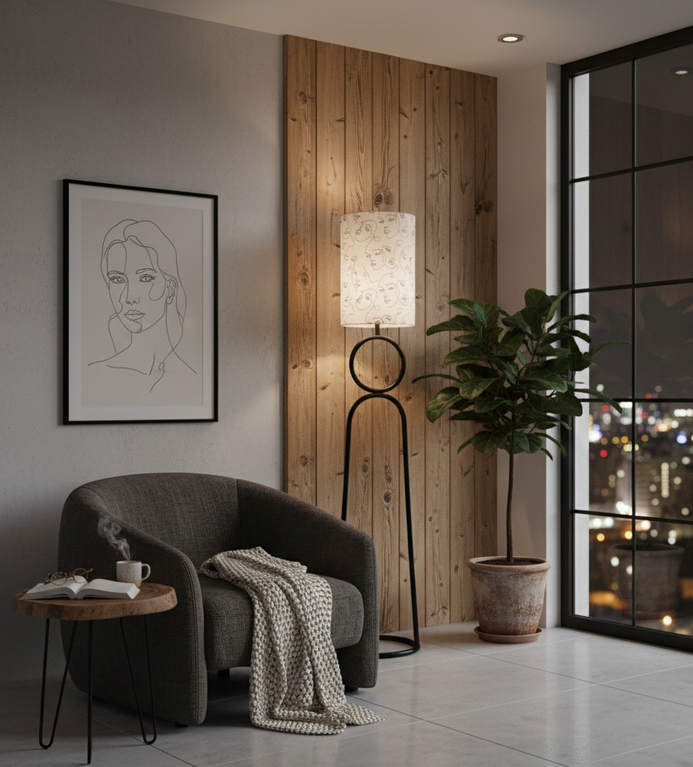 Bring a modern touch to your home with this floor lamp, crafted from durable metal and finished in a refined matte electrostatic coating, paired with a printed line-art shade for added character. Providing accent lighting with uplight illumination powered by a single E27 bulb, it is perfect for living rooms and bedrooms alike. Designed for versatile use, this lamp combines timeless elegance with reliable performance.