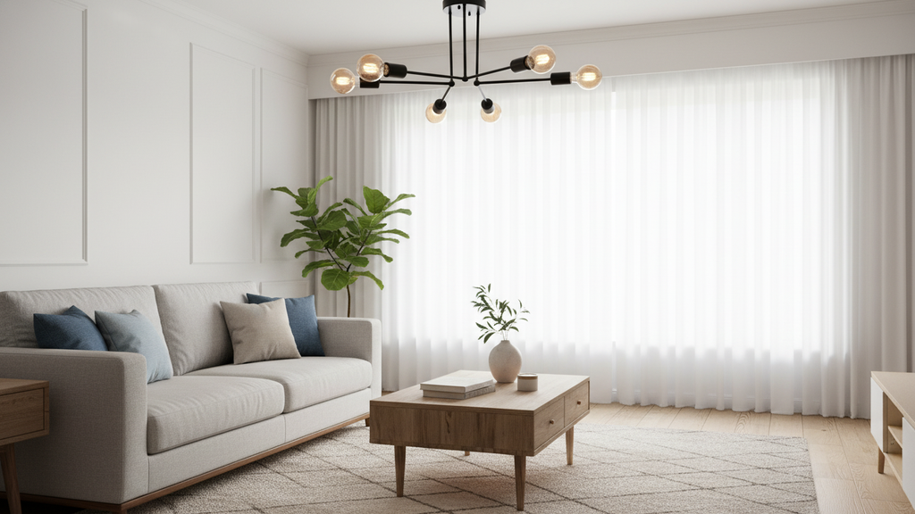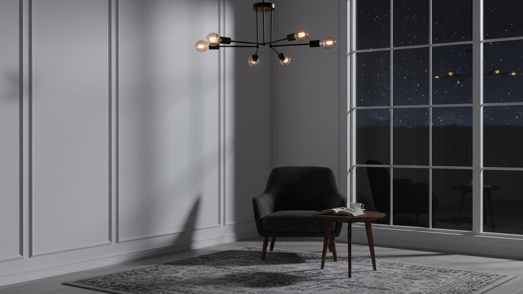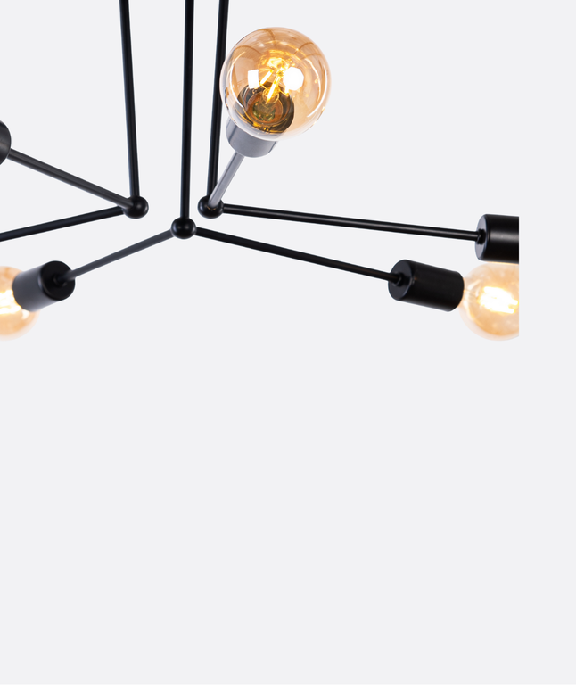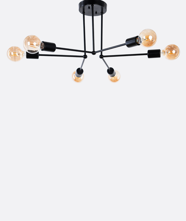 Modern black Branched chandelier with 6 exposed bulbs, designed to create a bold and stylish statement. Perfect for living rooms, dining areas, or commercial spaces, this ceiling light combines contemporary design with functional illumination, giving your interior a stylish modern edge