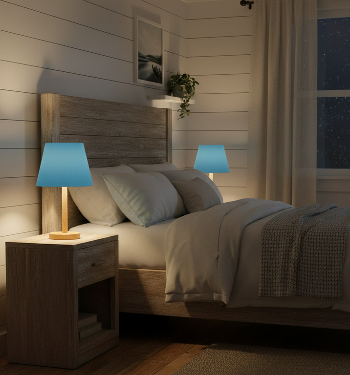 Add character to your room with this Modern Wooden Table Lamp, crafted from premium light wood with a natural finish and topped with a bold blue fabric shade. It delivers a warm accent glow that creates a cozy and inviting atmosphere, perfect for relaxing or reading. Designed with a balance of simplicity and elegance, this lamp is ideal for bedrooms, living rooms, or study corners, blending functionality with a pop of color to brighten up your décor.