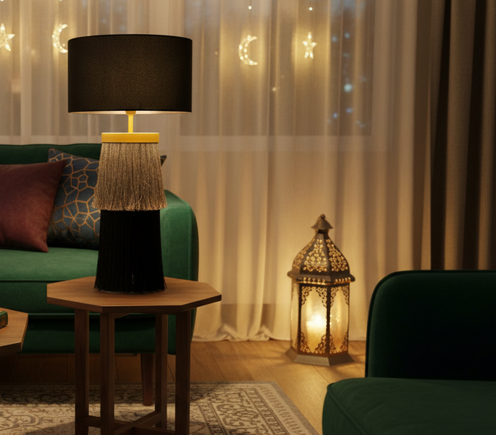 YL-L-742 Light Biege Burlap Islamic Table Lamp