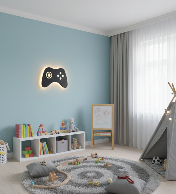 Brighten your child’s room with the playful Gaming-Inspired Wall Lamp, made from safe durable plastic in a fun matte navy finish to spark imagination. It offers bright ambient lighting, complete with a fixed wall-mounted structure and halo-style light diffusion using one E27 bulb for safe, energy-efficient glow. Perfect for kids’ bedrooms, playrooms, or gaming corners, this lamp combines safety, joy, and practicality with a touch of interactive charm.