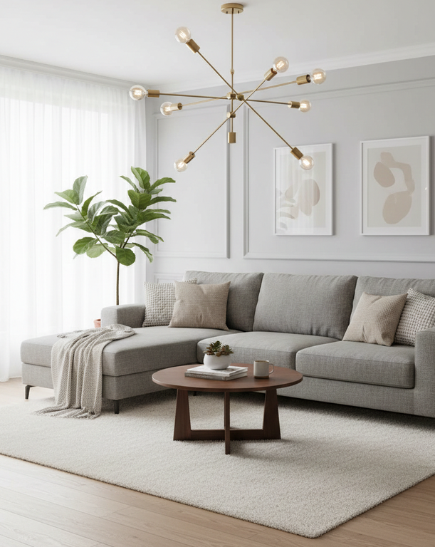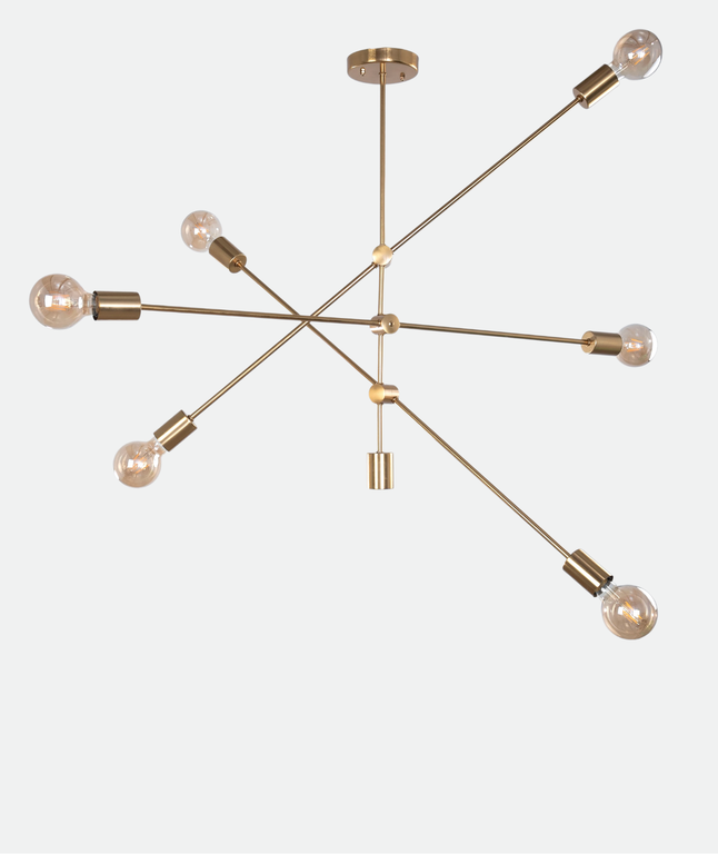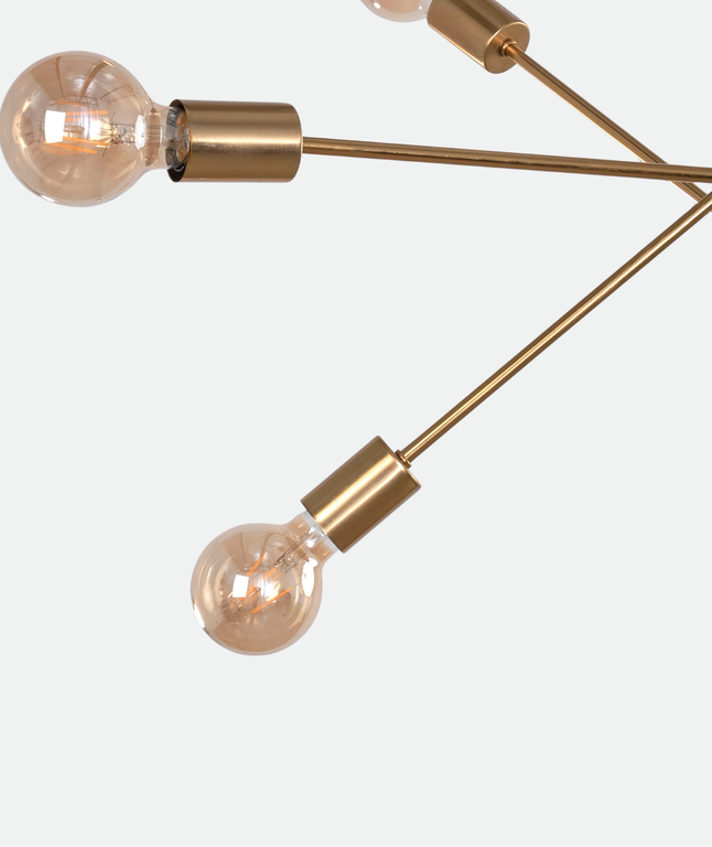 YL-C-52 The sputnik-style chandelier lamp blends metal strength with a brushed gold finish, bringing raw industrial charm to your space. Enjoy bright ambient lighting, designed with fixed arms and multidirectional illumination using 6 E27 bulbs for efficiency. Made for open-plan living rooms, lofts, or creative studios, it combines bold geometry, durability, and an urban edge.