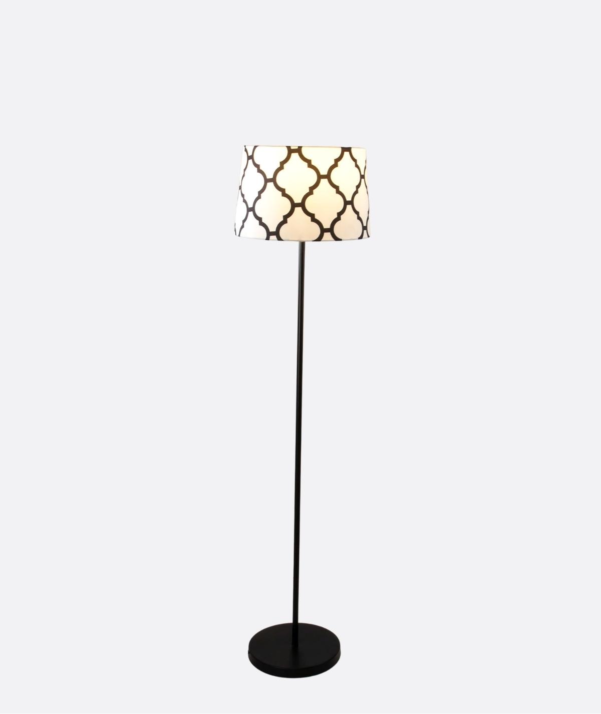 Bring a modern touch to your home with the Modern Moroccan-Inspired floor lamp, made from robust steel and finished in sleek black for a refined look. Offering accent lighting with a warm glow, it includes a fixed slender stand and diffused downward light for versatile use with a single E27 bulb. Ideal for living rooms or cozy corners, it delivers both timeless elegance and reliable performance.