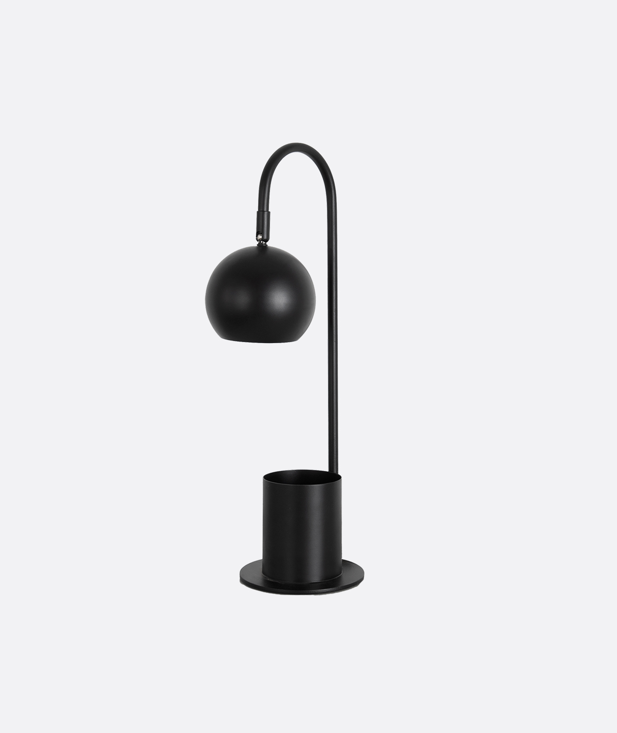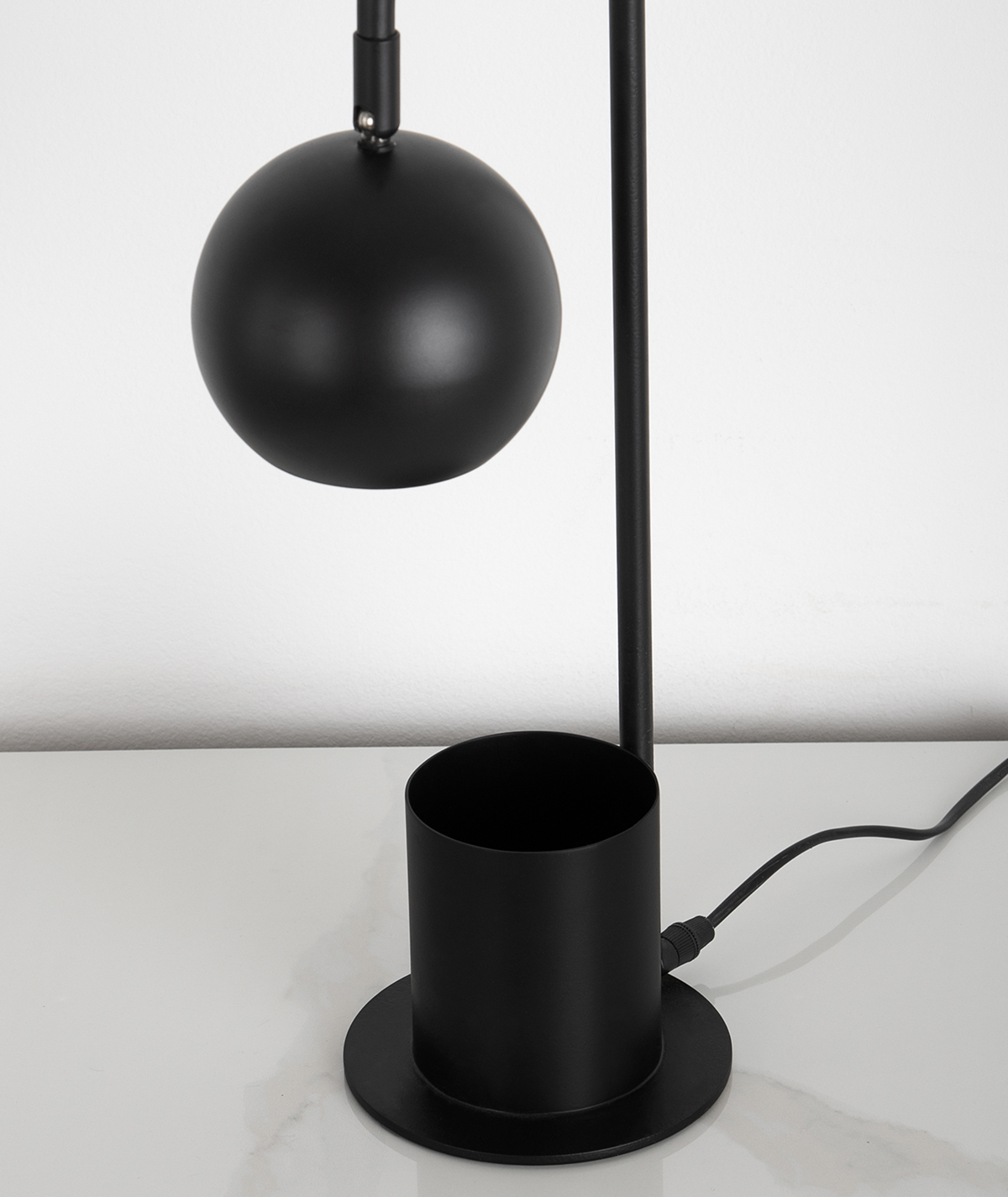 Minimalist Black metal desk lamp with a modern curved design and built-in pen holder. Perfect task lighting for study, office, or bedside use in Egypt.