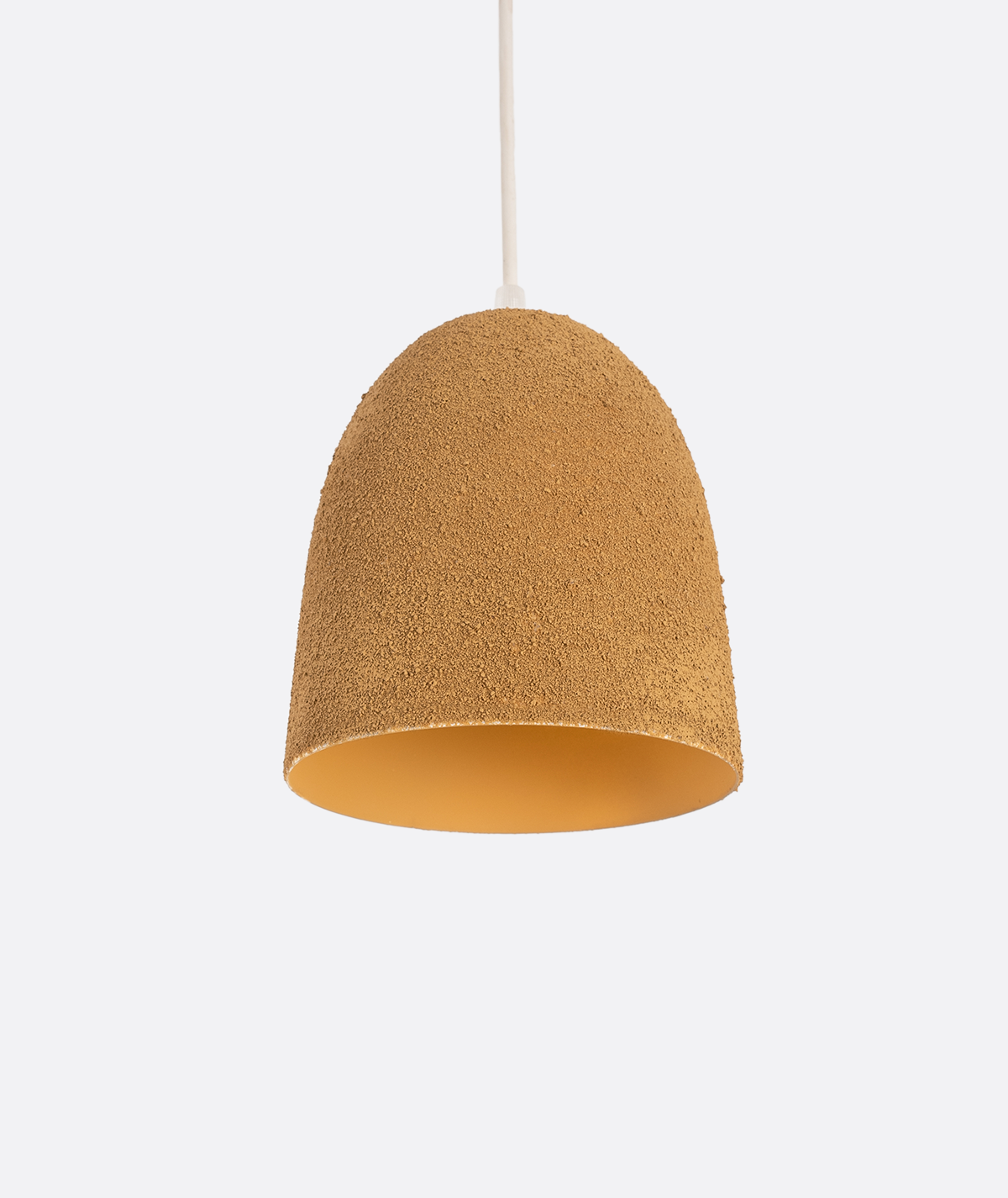 Modern pendant light with a dome-shaped shade made from textured sandy finish in warm beige. The unique rough surface adds a natural, handcrafted look while diffusing a cozy warm glow. Ideal for kitchens, dining areas, or modern caf?s.