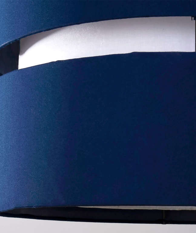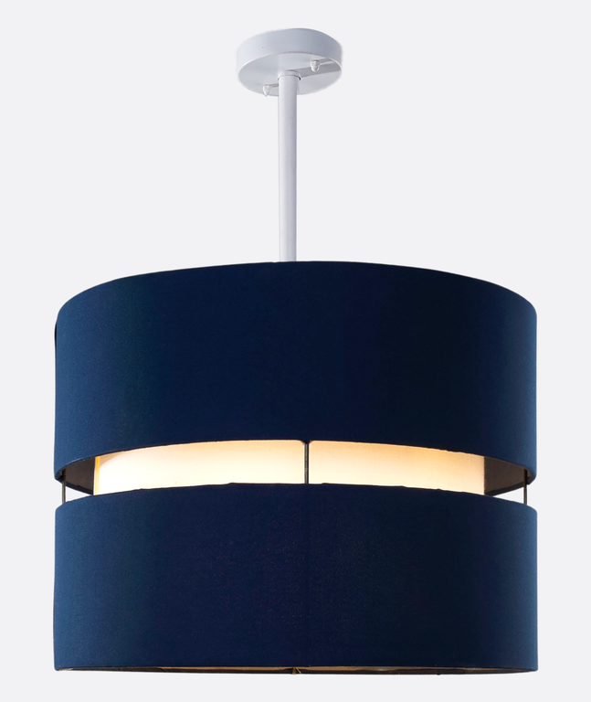 YL-C-32-BLU Bring contemporary charm to your space with the modern single-shade pendant lamp, featuring three cylindrical cotton shades?two in blue and one in white?supported by a light grey matte steel frame for a stylish accent. Designed to provide warm ambient lighting, it offers downward illumination powered by four E27 bulbs. Ideal for living rooms, bedrooms, and dining areas, its soft, warm glow adds a cozy and inviting touch to any modern interior.,