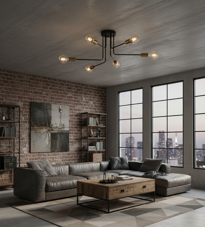 The Industrial ceiling lamp blends metal strength with a rugged black finish, bringing raw industrial charm to your space.