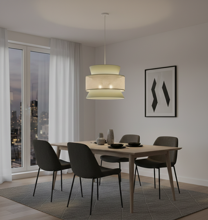 Bring a modern touch to your home with this  Modern Pendant Ceiling , made from rattan and linen and finished in black and light beige for a refined look.
