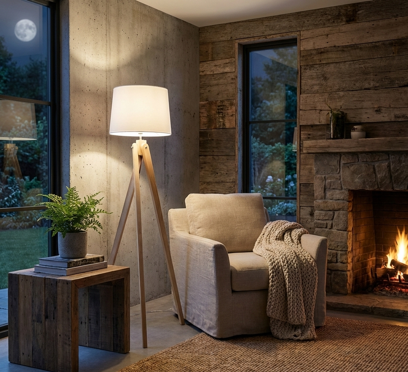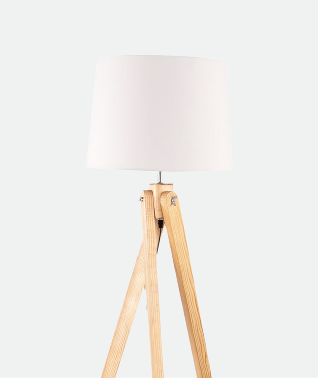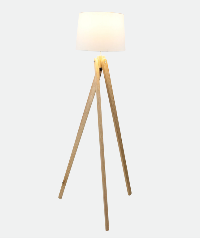 This tripod floor lamp combines natural wood legs with a clean white shade, offering a warm and minimalist look. Its Scandinavian-inspired design adds comfort and style to any room. Perfect for living areas, bedrooms, or cozy corners in modern Egyptian homes.
