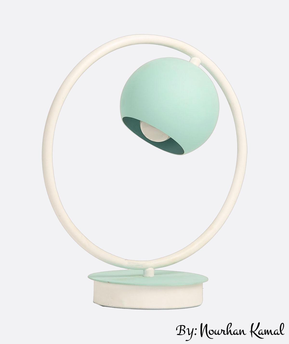 YL-T-201-BB A modern and artistic table lamp that blends clean geometry with warm elegance. The matte white circular frame holds a suspended Blue sphere that glows softly, creating a cozy and stylish atmosphere. It looks more like a decorative sculpture than a typical lamp. Perfect for bedrooms, reading corners, or reception desks?especially in spaces that love minimal design with a hint of luxury. Easy to use and effortlessly beautiful. ,
