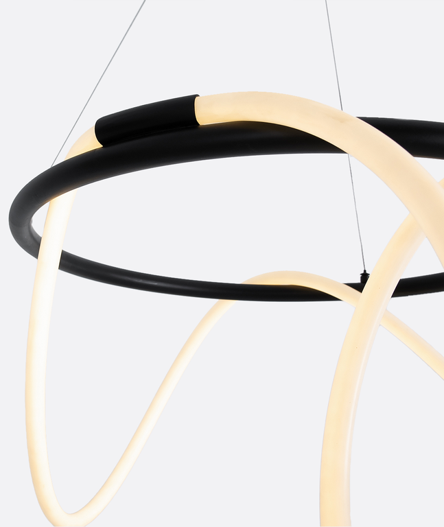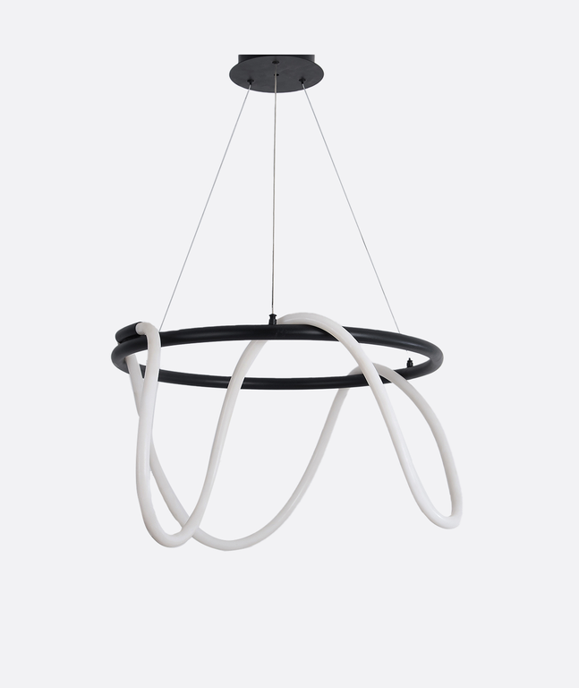Stylish LED chandelier with a black circular frame and flowing white light strips. Perfect for modern living rooms, dining areas, and contemporary interiors in Egypt.