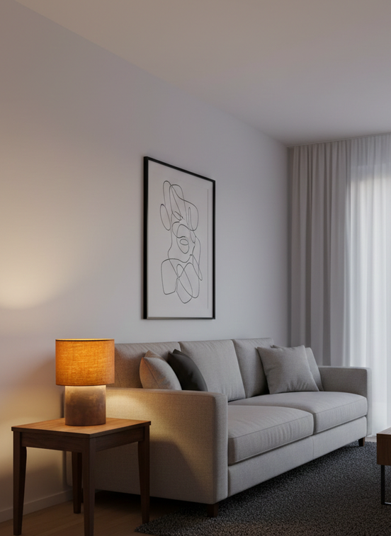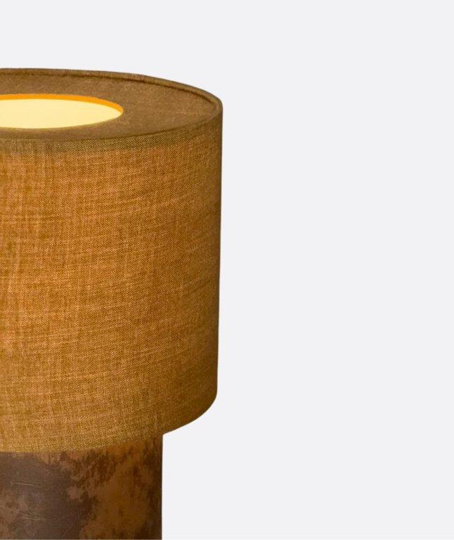 A stylish table lamp featuring a warm burlap fabric shade and a brown leather-covered cylindrical base. Its earthy tones and minimalist design make it a perfect fit for modern interiors, including living rooms, bedrooms, hotels, and cozy reading corners.