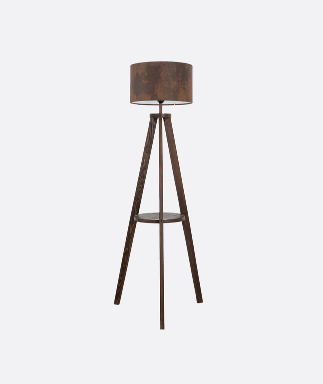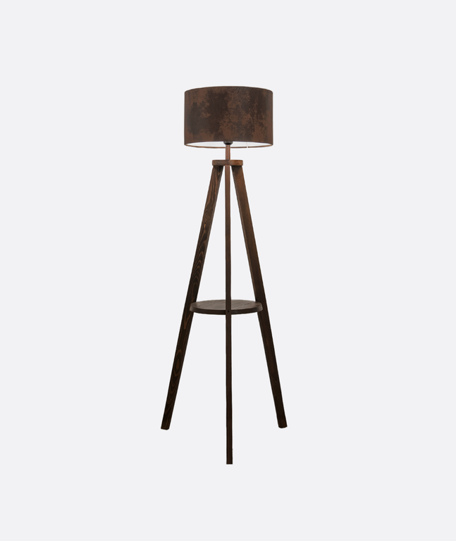 Modern tripod floor lamp with a dark wood base and a rustic brown fabric shade, combining natural warmth with industrial elegance. Perfect for living rooms, bedrooms, and stylish interiors in Egypt.