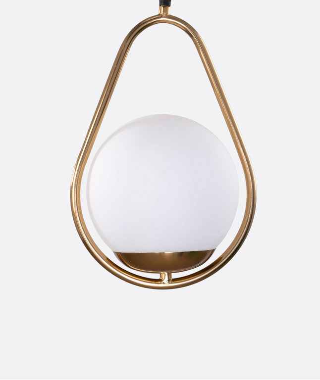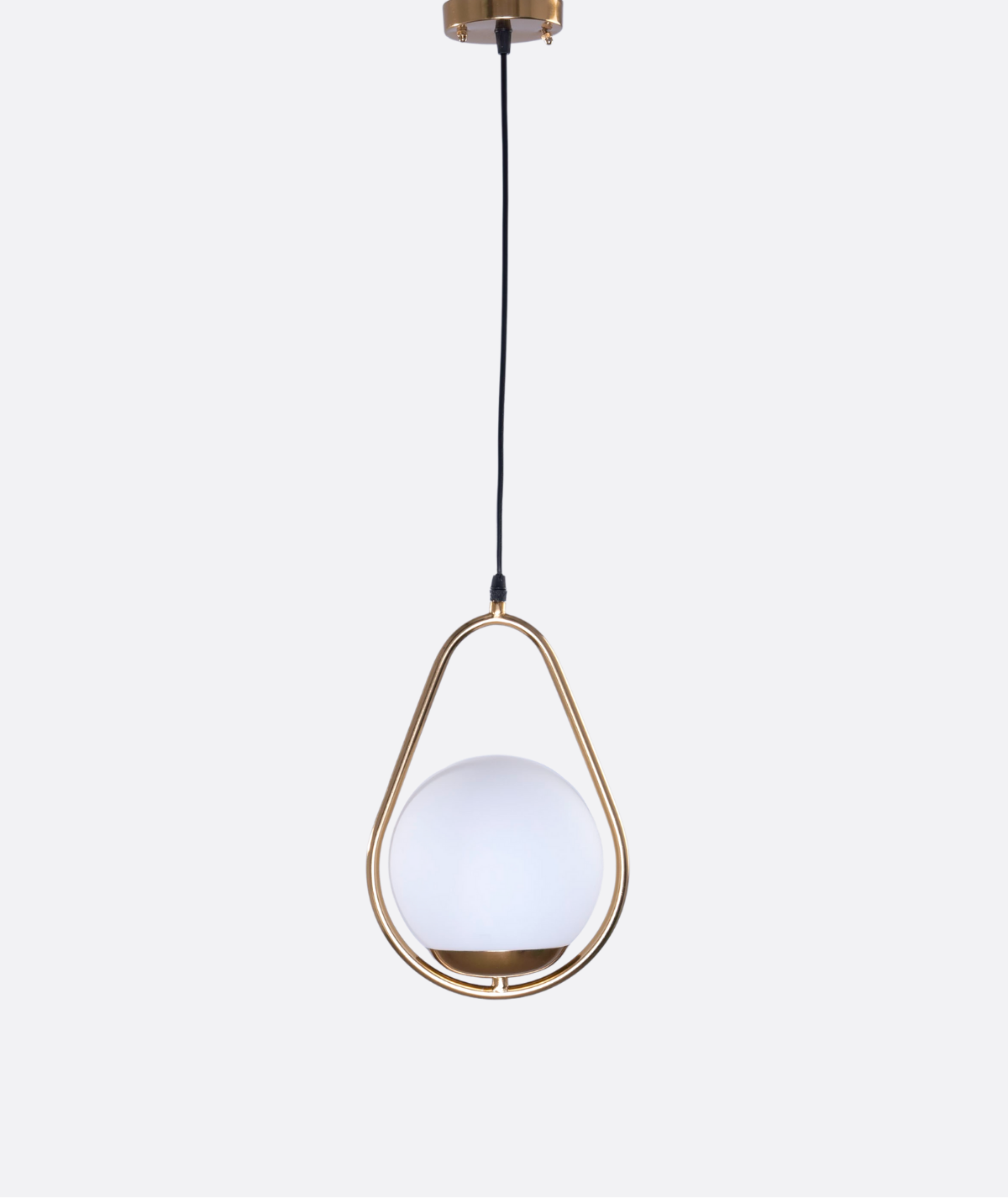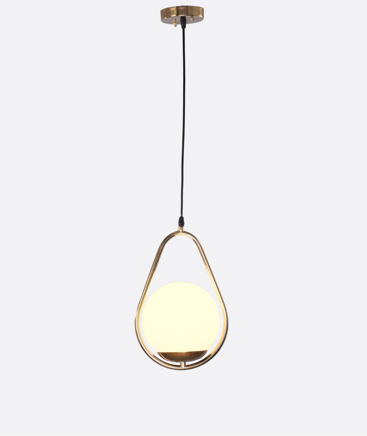 YL-P-54-O Bring contemporary charm with the modern pendant lamp, built from metal and finished in brushed gold for a stylish accent.It provides warm ambient lighting, featuring an adjustable cord and downward illumination powered by one E27 bulb enclosed in a opal glass globe.Perfect for bedrooms, reading corners, or elegant entryways, this lamp adds modern design, comfort, and reliable use.