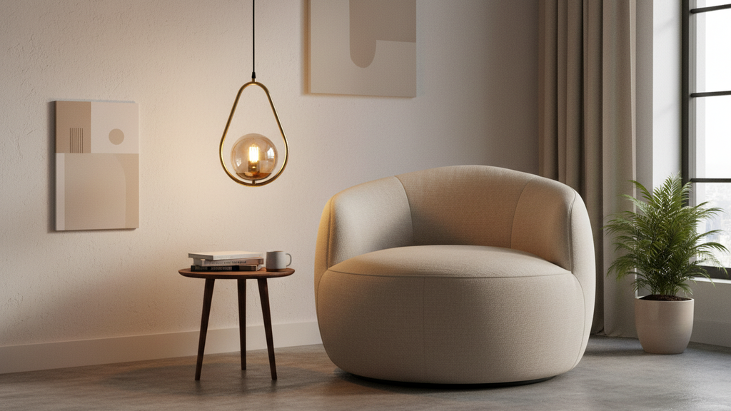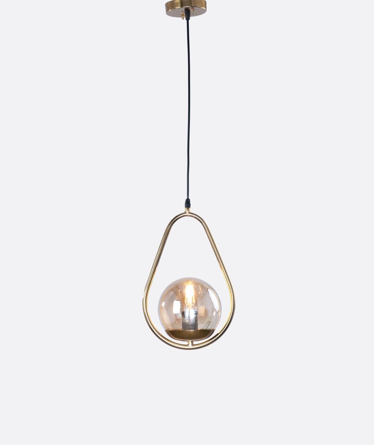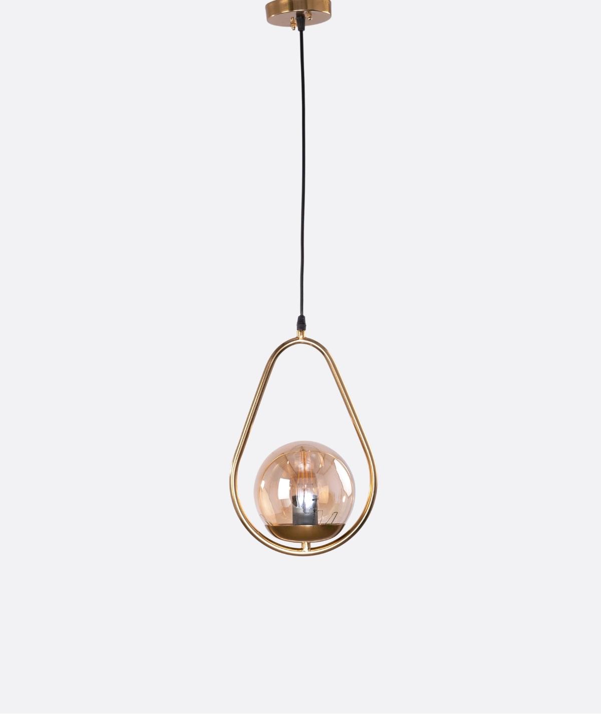 YL-P-54-AM Bring contemporary charm with the modern pendant lamp, built from metal and finished in brushed gold for a stylish accent. It provides warm ambient lighting, featuring an adjustable cord and upward illumination powered by one E27 bulb enclosed in a amber glass globe. Perfect for bedrooms, reading corners, or elegant entryways, this lamp adds modern design, comfort, and reliable use.