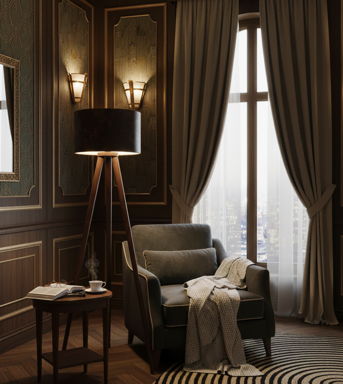 This elegant floor lamp features a sleek stand paired with a premium leather supported lampshade, blending modern design with a touch of luxury. Its warm lighting and sophisticated finish make it a perfect choice for living rooms, bedrooms, or office spaces, adding both functionality and style