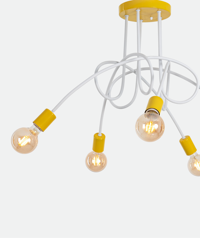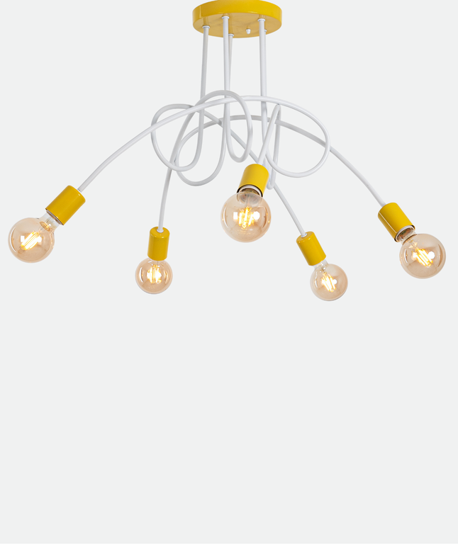 This industrial-style chandelier light features a sturdy white metal frame with 5 exposed bulbs branching out for maximum illumination. Its raw and modern design makes it both a decorative statement and a functional source of general lighting. Perfectly suited for both residential and commercial spaces, it works beautifully in Restaurants & cafésOffices & workspacesDining rooms & kitchensLiving areas .The matte black finish and open-bulb design ensure a versatile look that blends durability with industrial elegance.