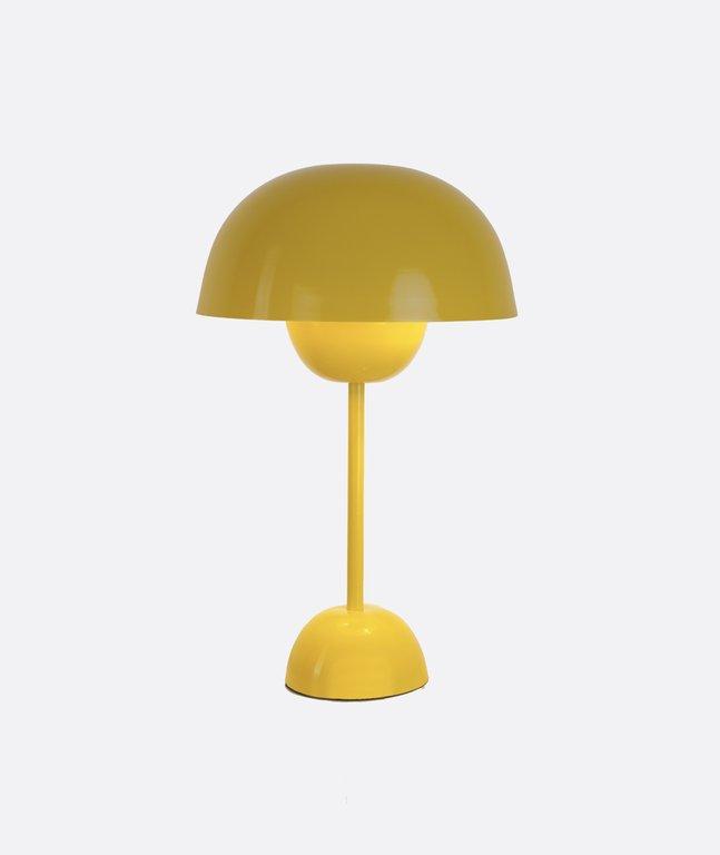 Modern yellow metal table lamp with dome shade. A bold accent lighting piece that adds color and style to bedrooms, living rooms, or offices