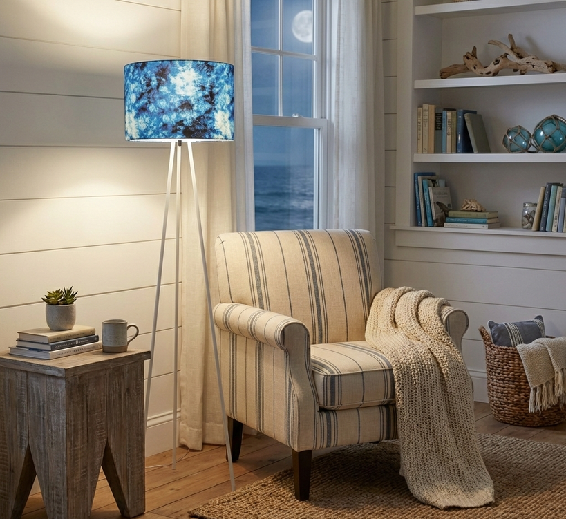 YL-F-659-BLU Printed Shade Tripod Floor Lamp