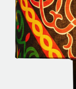 This unique table lamp features a sleek black metal base paired with a vibrant printed cotton fabric shade inspired by traditional oriental designs. Its bold colors and artistic details make it a standout decorative piece, adding both light and personality to any interior. Perfect for living rooms, bedrooms, or side tables,this lamp blends cultural charm with modern functionality.