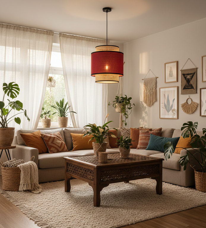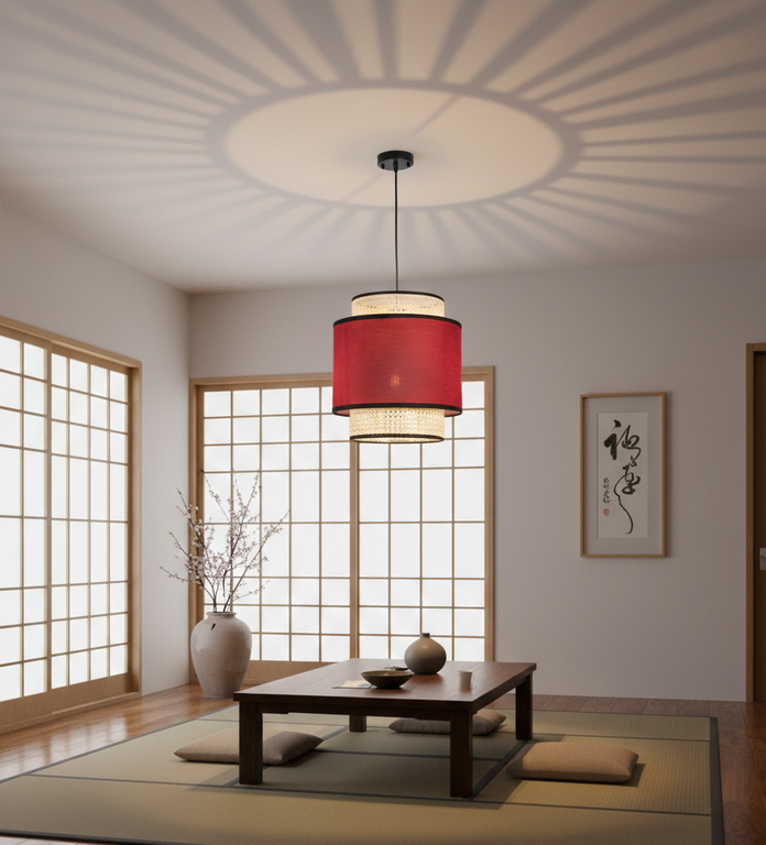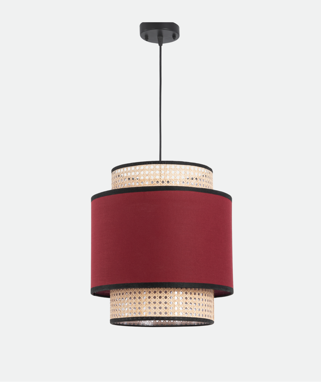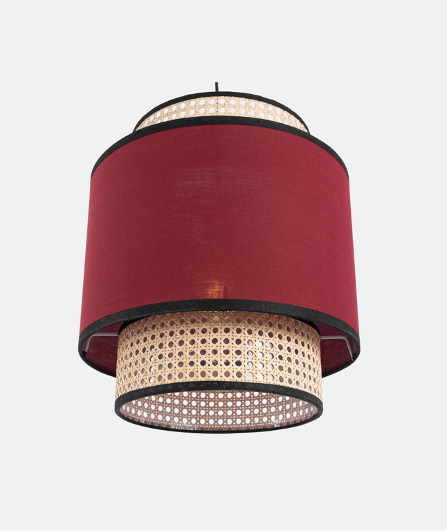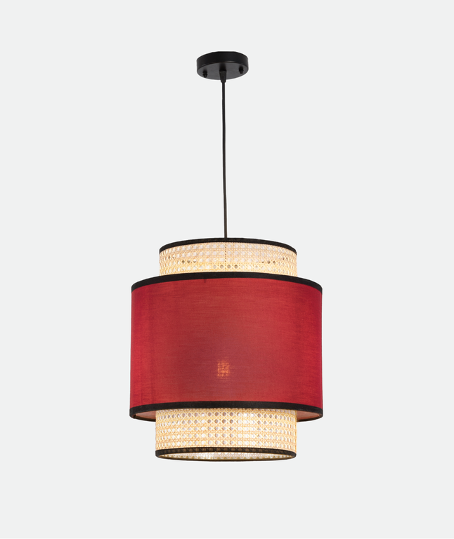 This supported rattan and cotton fabric light pendant, crafted in Egypt Ā blends natural charm with modern design. Featuring a two rattan cane light beige shades combined with a bold red cotton fabric layer, it creates warm ambient lighting for living rooms, dining areas, and hospitality spaces