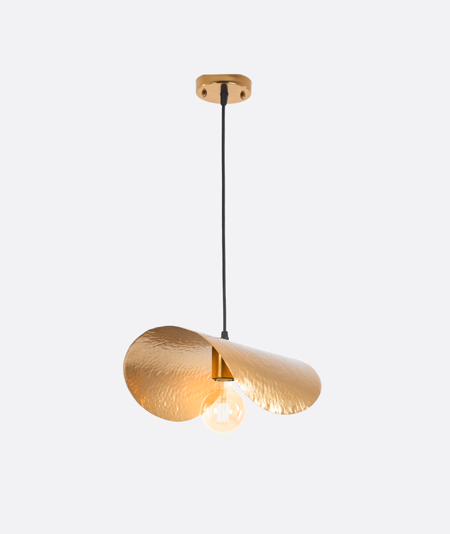 A Single Gold and Black Pendent Ā Light combines modern elegance with functionality. Featuring one hammered gold aluminium shade crafted in Egypt, Suspended with a rope from a sleek black metal, this fixture creates warm ambient lighting. Ideal for living rooms, kitchens, and hospitality interiors, it complements modern and contemporary