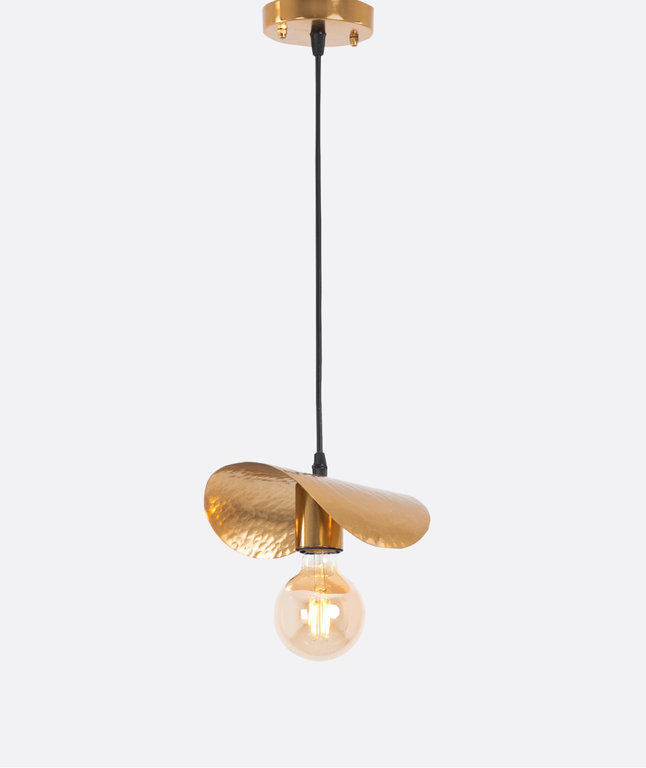A Single Gold and Black Pendent Ā Light combines modern elegance with functionality. Featuring one hammered gold aluminium shade crafted in Egypt, Suspended with a rope from a sleek black metal, this fixture creates warm ambient lighting. Ideal for living rooms, kitchens, and hospitality interiors, it complements modern and contemporary