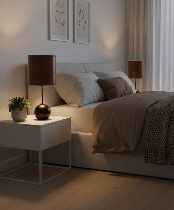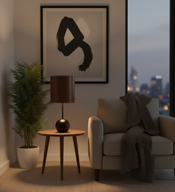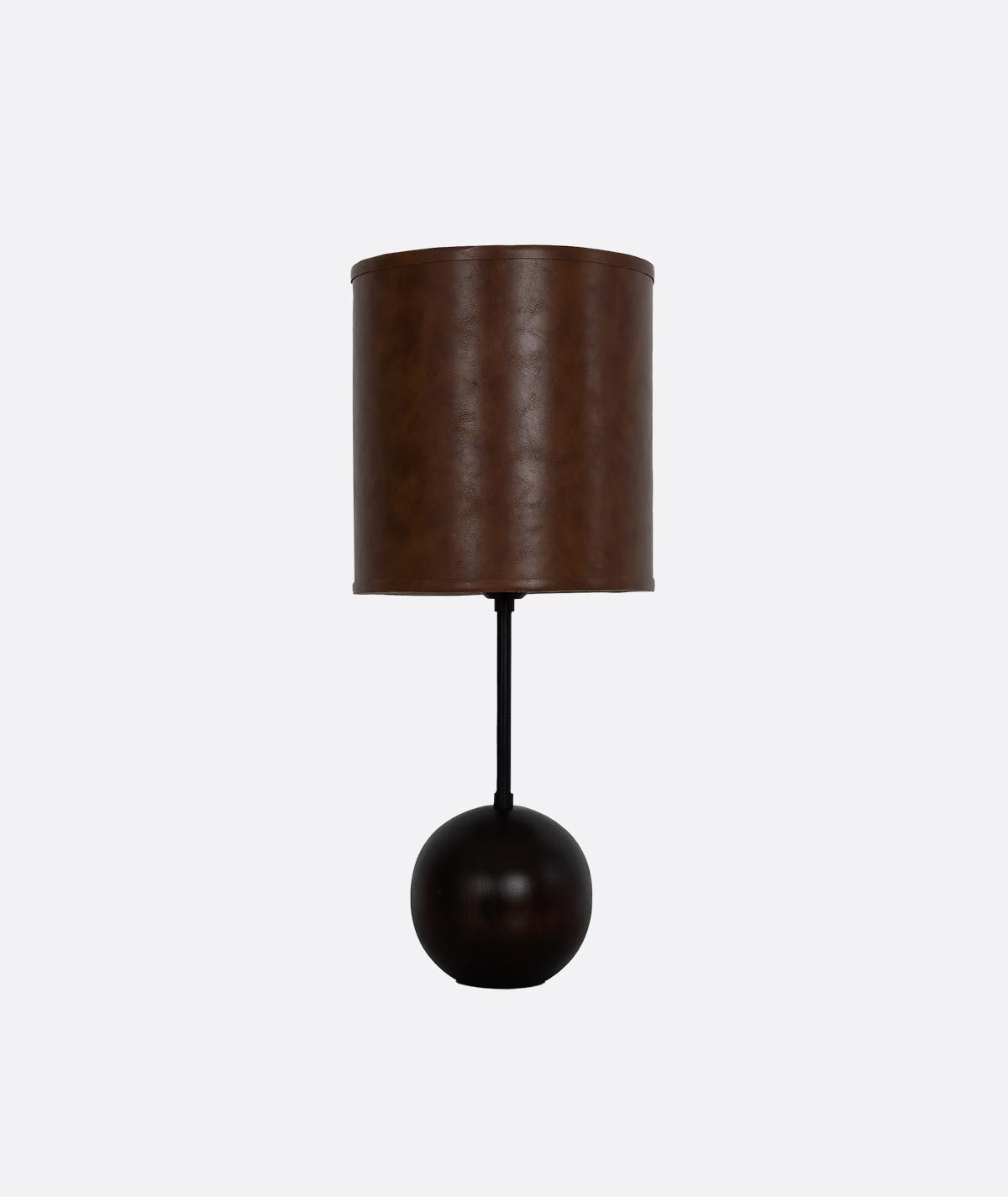 The contemporary table lamp combines beech wood, crafted into a refined ball shape, with a supported leather shade in a rugged brown matte finish, bringing modern charm to your space. It provides accent lighting with efficient uplight illumination powered by a single E27 bulb. Designed for minimalist and contemporary interiors, this lamp merges natural warmth with sleek functionality, making it a timeless design piece that elevates any setting